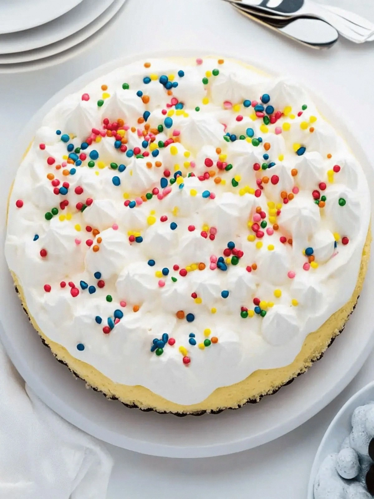 I’ve spent months hunting for that one cheesecake that feels like a hug and a confetti party in one. The aroma that unfurls when you crack open a tub of cream cheese is like a sweet promise of comfort. The texture—soft, dense, with a slight spring—makes each forkful feel like a secret handshake between you and the universe. The visual appeal of rainbow jimmies cascading over a glossy, ivory base is a festival that invites you to dive in. And the finish? A silky whipped cream cloud that whispers “you made it” to your taste buds.