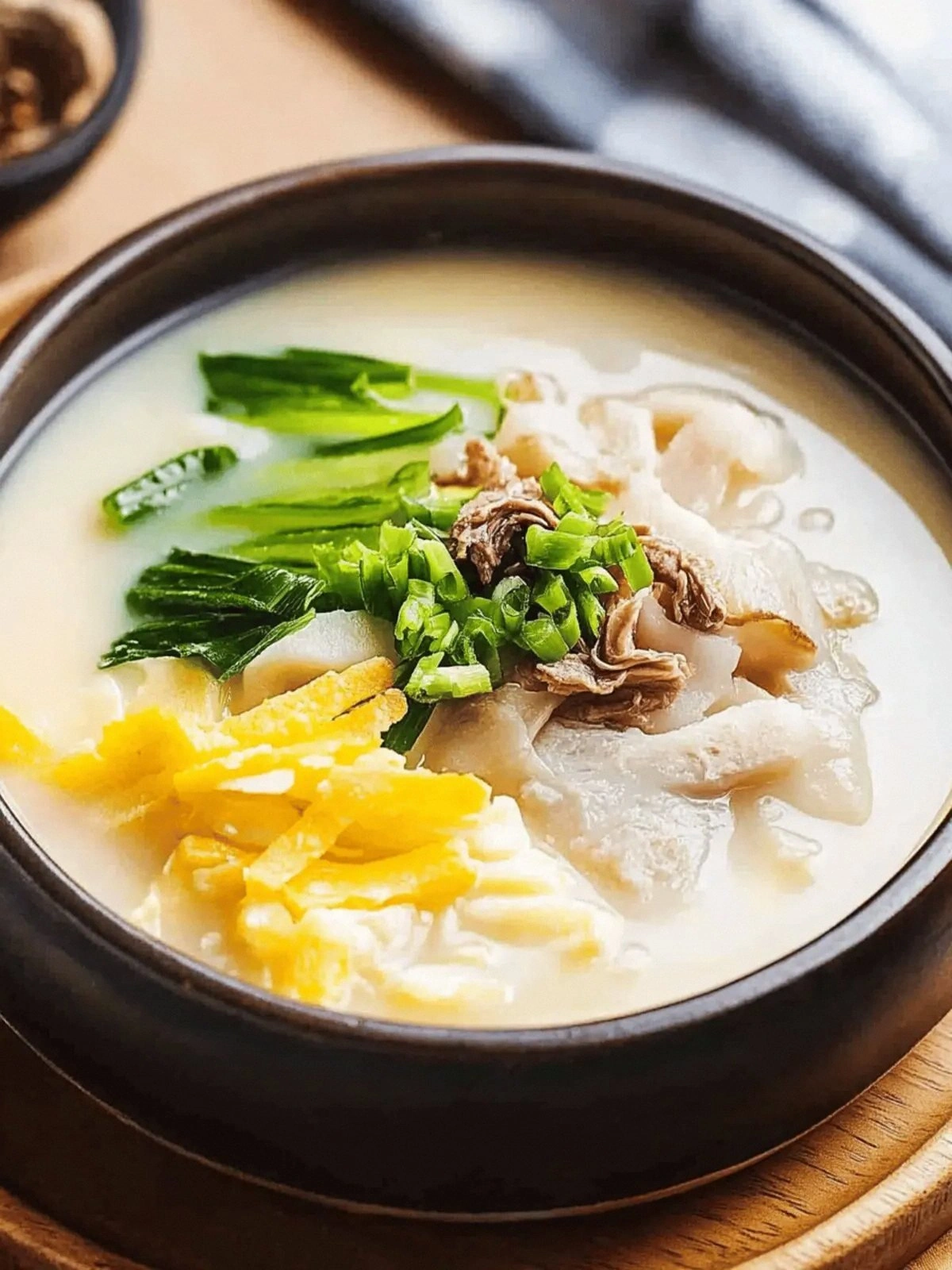 Green onions and dried sea laver add fresh, briny accents that brighten the broth. The optional green onions are a flexible garnish—use them to add a pop of color and crunch. A tiny splash of water before reheating restores the broth’s silky texture. If you forget to add the sea laver, the soup will lack that essential umami note.